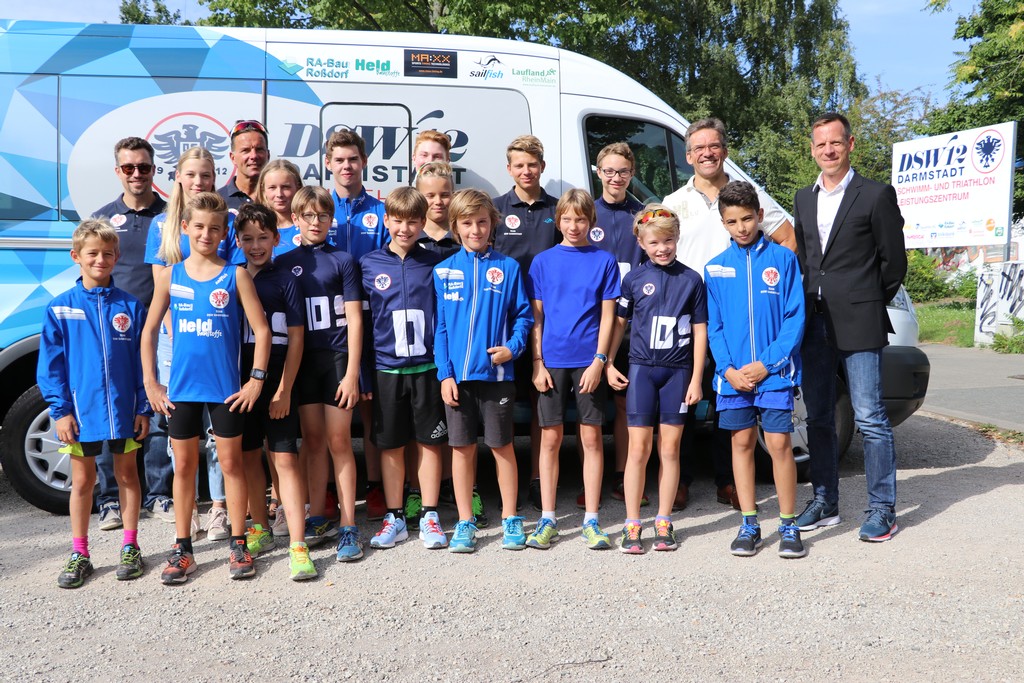 Um die Jugendarbeit der Triathlonabteilung zu unterstützen und jungen Athleten im Alter zwischen zehn und 17 Jahren die Möglichkeit zu geben, gemeinsam zu den Wettkämpfen, Trainingscamps oder zu anderen Freizeitaktivitäten zu reisen, übernimmt die bauverein AG in den nächsten drei Jahre die Kosten für einen Ford-Transit-Bus in Höhe von insgesamt 10.000 Euro. Das Fahrzeug wurde dafür gut sichtbar mit dem Logo des städtischen Wohnungsunter-nehmens versehen und ist bereits seit einigen Wochen im Einsatz. Auch ins Feriencamp reisten die jungen Dreifach-Athleten und ihr Equipment bereits ganz bequem mit dem Bus. Die symbolische Übergabe erfolgt wegen der hessischen Sommerferien jedoch erst am heutigen Donnerstag (24.).